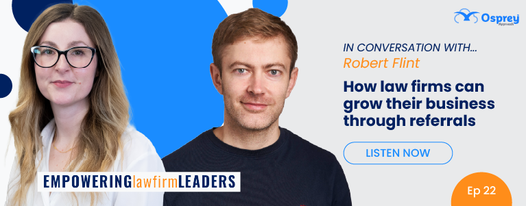 Referrals remain one of the most powerful – yet underused – growth strategies for SME law firms. In episode 22 of Osprey Approach’s podcast series, Empowering Law Firm Leaders, Robert Flint, practising corporate lawyer and CEO of Adviserly, joined Amy Bruce, marketing director at Osprey Approach, to discuss how law firms can grow their business this way. Robert shares insights on building effective referral networks, qualifying opportunities, and managing complex referrals to deliver excellent client service.